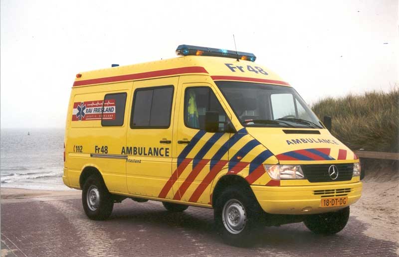 Fin 2004, la première Mercedes-ambulance de type Visser 4 en service aux Pays-Bas.