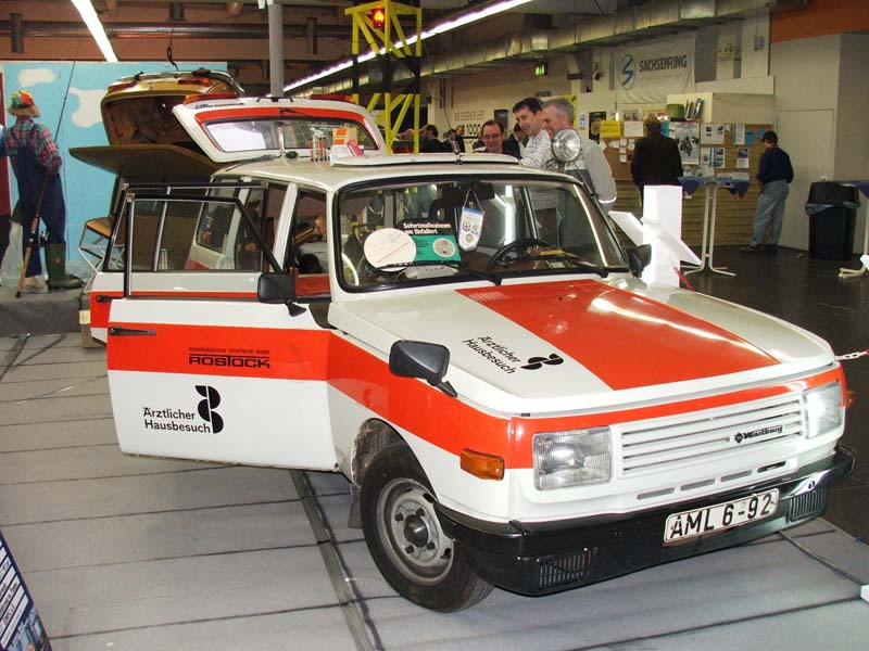 Une Wartburg, véhicule construit entre 1969 et 1989, année de la chute du Mur de Berlin. Ici utilisé par un médecin de garde, ce modèle a aussi été utilisé comme ambulance.