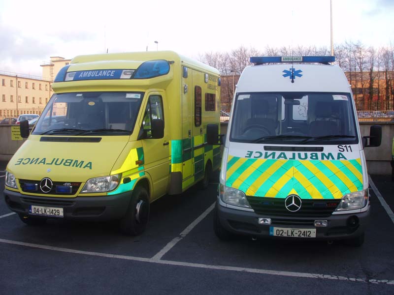 deux generations d'ambulances en Ireland. la jaune est aux nouvelles norme Europeens.